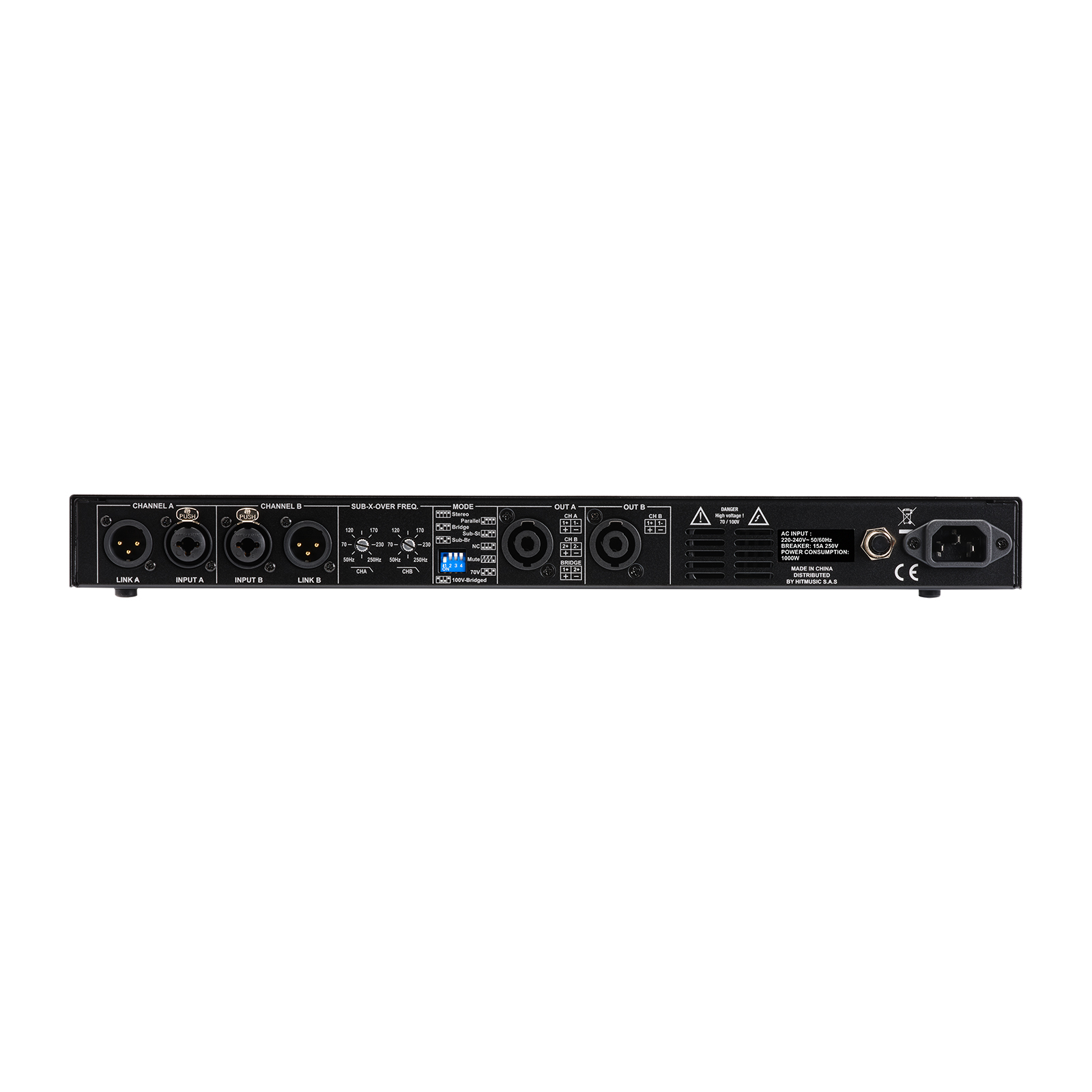 • Multiple moduri de putere: stereo, bridge și 100 V