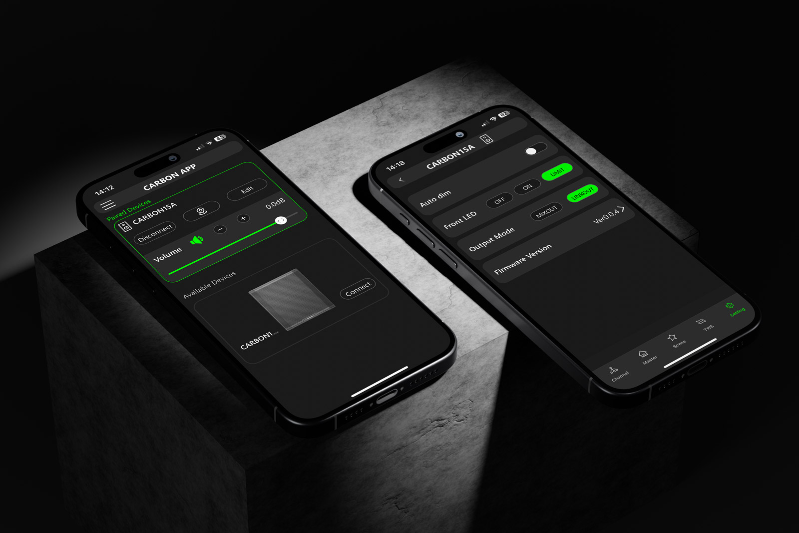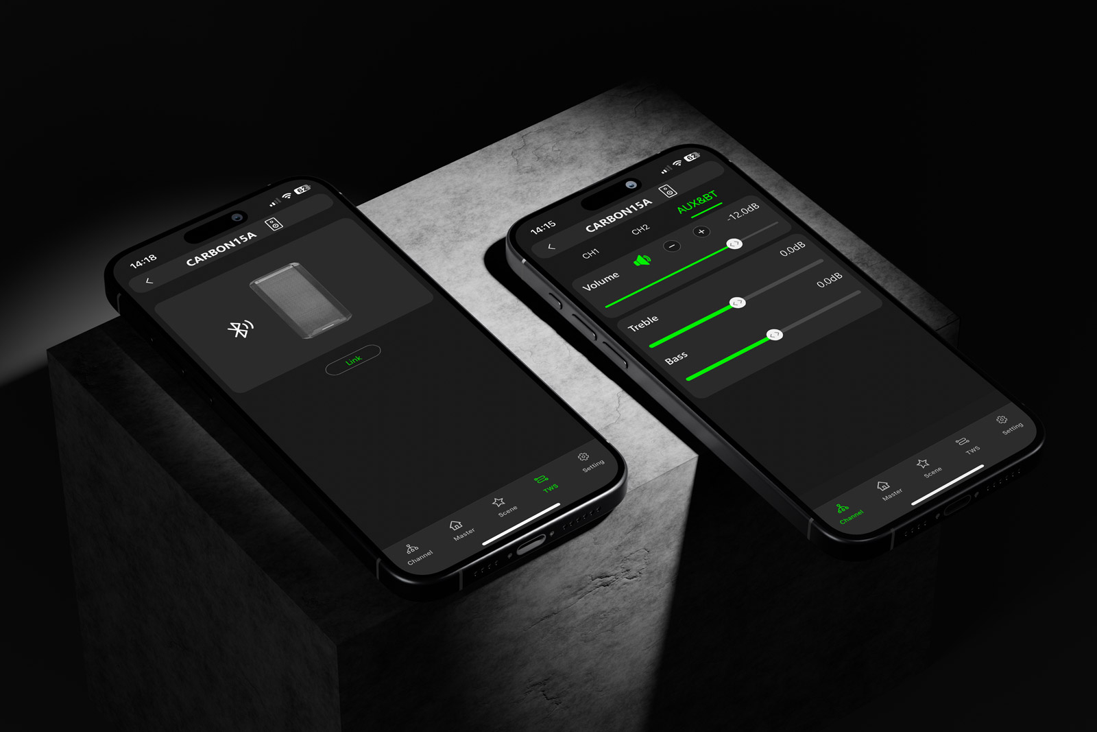 - Bluetooth TWS + App – streaming wireless și control simplu din aplicația CARBONcontrol (iOS/Android).
