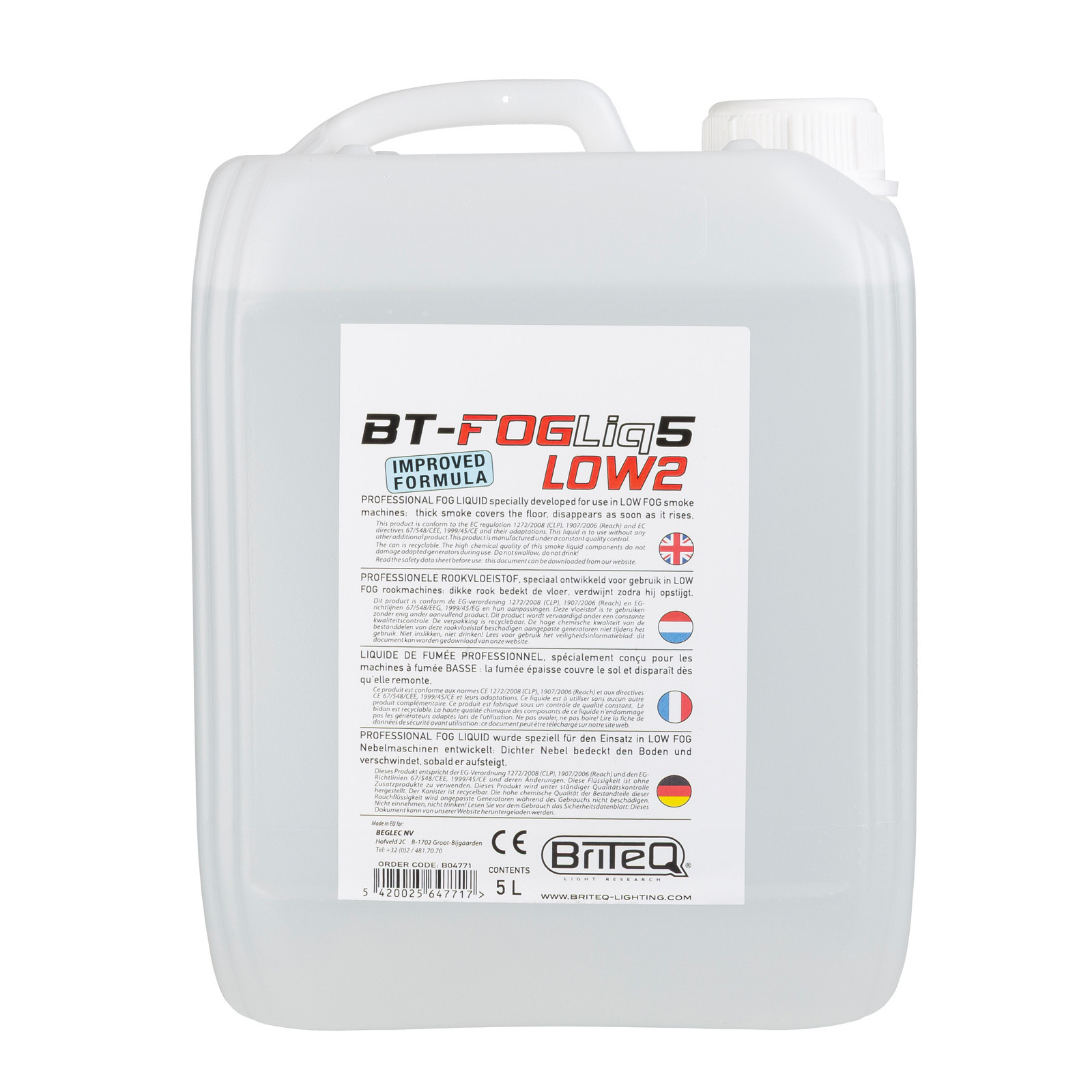 BT-FOGLIQ5 LOW2 de la BRITEQ, lichid Low Fog de ultimă generație: creează ceață joasă densă, curată și stabilă pentru scene, evenimente și platouri TV. Efect premium, look cinematografic și rezultate profesionale, fără complicații.